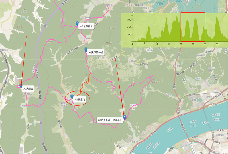 发布于 2025-11-04 17:23 楼主 【金山文档 | WPS云文档】 隆6路书-A2大清谷-A3陌上九溪(林海亭)https://www.kdocs.cn/l/cnlZxyXxQYA5(复制以上链接,用浏览器打开)A2大清谷20km处A3陌上九溪(林海亭)28km处中间间隔8km,距离适中设置w3梅家坞补水站点,位于赛段24km处,W3也是30k和42k分岔口,30k左前方,42k右前方请别跑错
